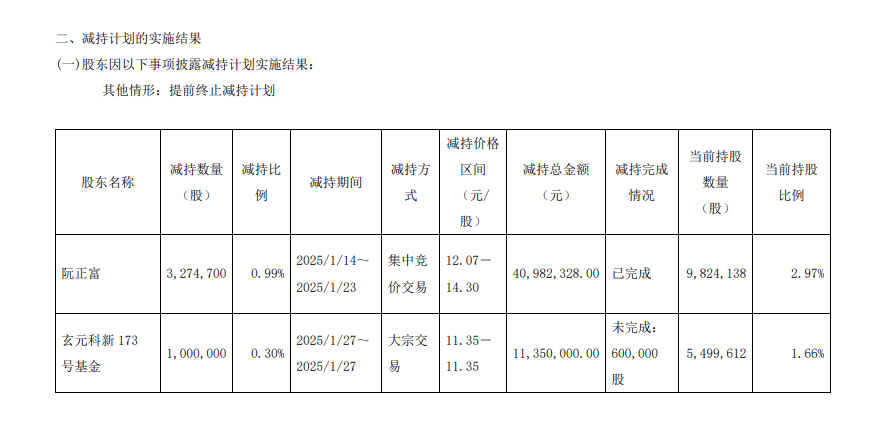 2025年2月4日,公司收到银鞍岭英及其分歧步履人出具的《关于已完成公司股份减持打算奉告的函》,截至2025年2月4日,银鞍岭英及其分歧步履人已减持567,578股公司股票,减持打算实施完毕。