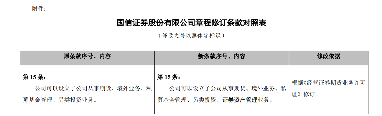 国信证券于2023年11月10日收到中国证监会《关于核准国信证券设立资产办理子公司的批复》(证监许可[2023]2512号)。按照批复,国信证券资产办理无限公司(国信资管)于2024年4月23日打点完成工商登记手续并领取了停业执照。2025年1月27日,国信证券子公司国信资管领取了《运营证券期货营业许可证》,证券期货营业范畴为:证券资产办理。公司于同日换领了新的《运营证券期货营业许可证》,证券期货营业范畴为:证券经纪;证券投资征询;取证券买卖、证券投资勾当相关的财政参谋;证券承销取保荐;证券自营;融资融券;公募证券投资基金发卖;代销金融产物;股票期权做市;上市证券做市买卖。