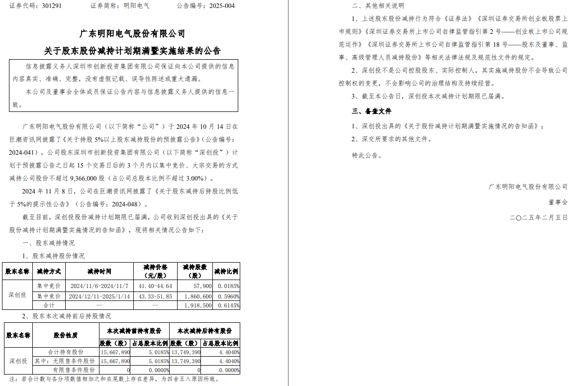 公司于2025年2月5日收到明源基金及其分歧步履人中亿明源配合出具的《关于股份减持打算刻日届满暨实施环境奉告函》。截至2025年2月4日,明源基金及其分歧步履人中亿明源本次减持打算刻日届满,未减持公司股份。