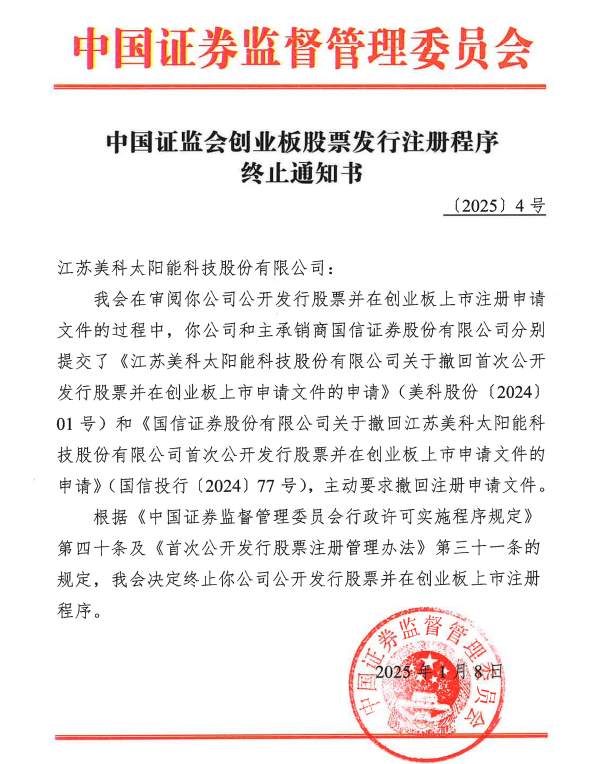 深圳证券买卖所于2023年12月29日依法受理了你公司初次公开辟行股票并正在从板上市的申请文件,并依法依规进行了审核。日前,你公司向本所提交了《姑苏利来工业智制股份无限公司关于撤回初次公开辟行股票并正在从板上市申请文件的申请》,保荐人向本所提交了《中信证券股份无限公司关于撤回姑苏利来工业智制股份无限公司初次公开辟行股票并正在从板上市申请文件的申请》。按照《深圳证券买卖所股票刊行上市审核法则(2024年修订)》第六十二条的相关,本所决定终止对你公司初次公开辟行股票并正在从板上市的审核。