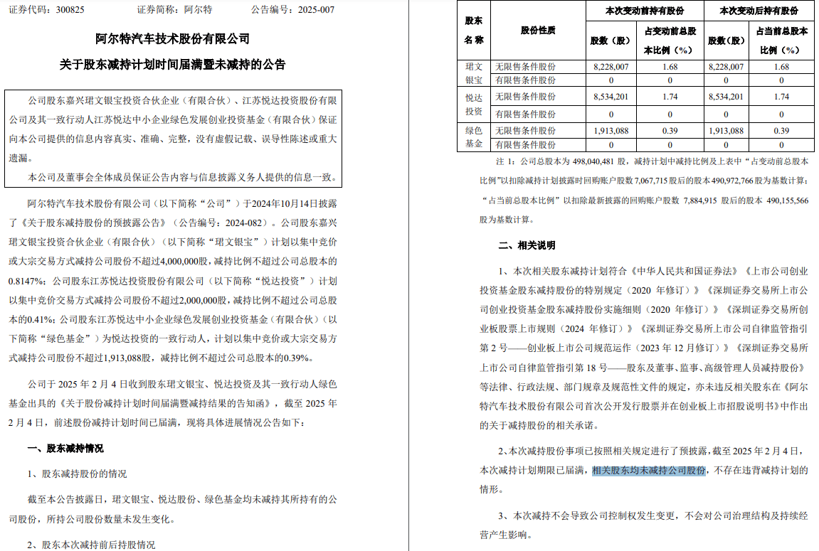 公司于2025年2月4日收到股东珺文银宝、悦达投资及其分歧步履人绿色基金出具的《关于股份减持打算时间届满暨减持成果的奉告函》,截至2025年2月4日,前述股份减持打算时间已届满,相关股东均未减持公司股份。