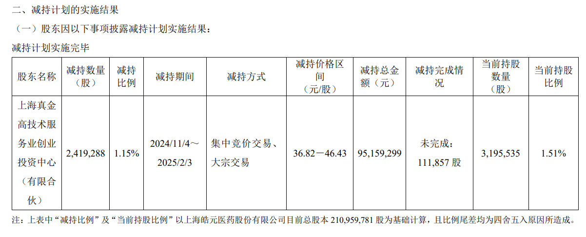 近日,公司收到实金投资出具的《关于股份减持成果的奉告函》,2024年11月4日至2025年2月3日期间,实金投资通过集中竞价和大买卖体例累计减持公司股份2,419,288股,占公司当前总股本的1。15%。